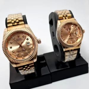 ست ساعت رولکس تاریخ دار موتور ژاپن – طلایی صفحه مشکی