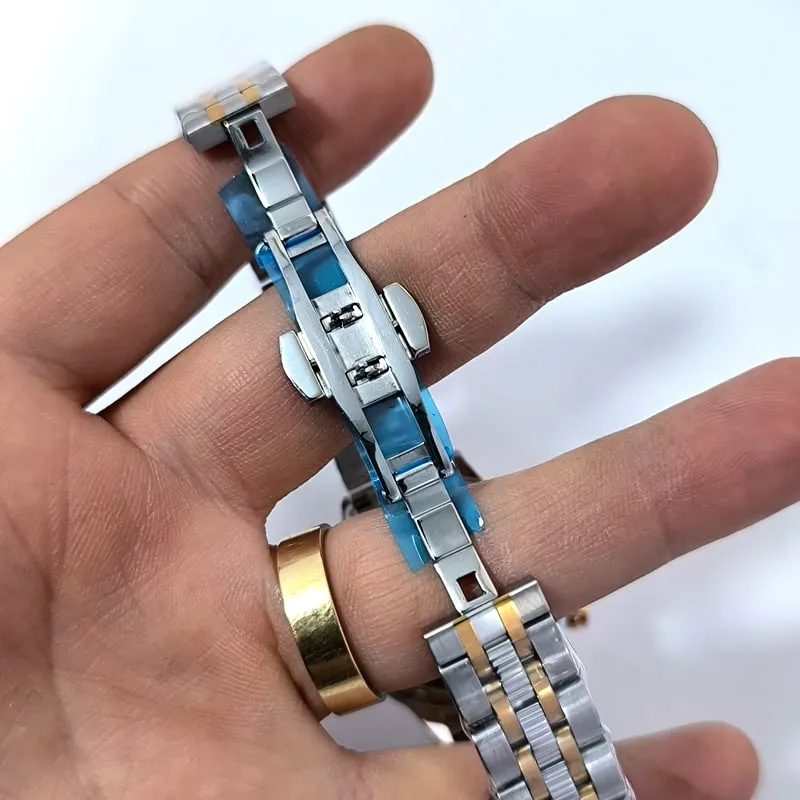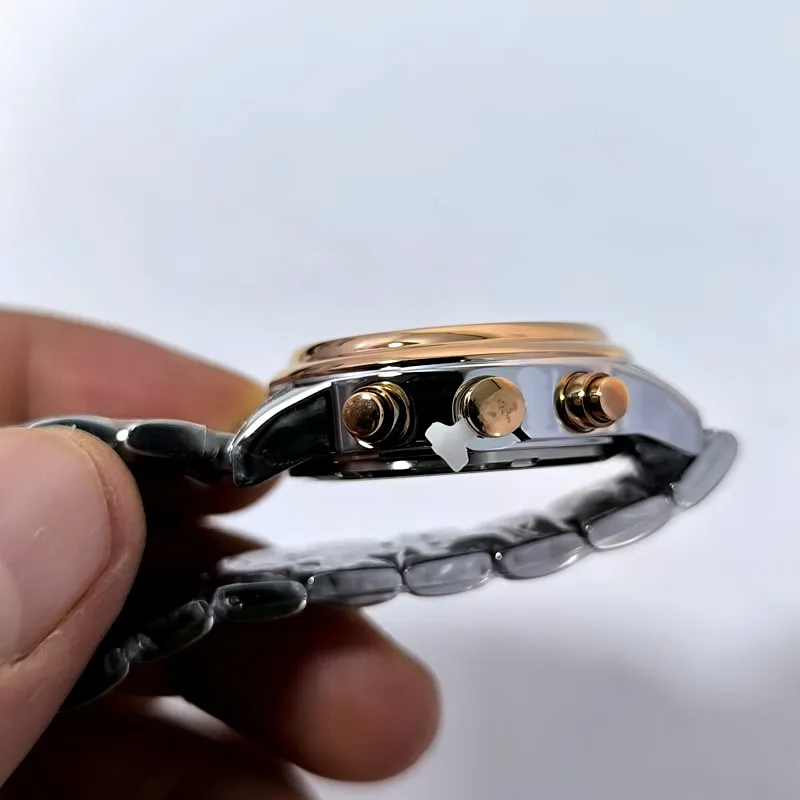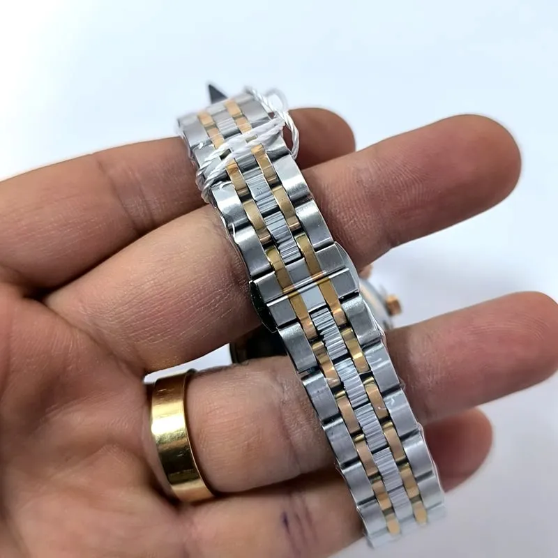 این ساعت زیبای جذاب و رنگ ثابت، سه موتور فعال ژاپن، شیشه ضد خش، بند با کیفیت و ظاهری بسیار زیبا مناسب مچ دست خانم های ظریف پسند است، این ساعت شیک و مجلسی می تواند جلوه خاصی به دستان شما بدهد و صفحه آن زیر نور رنگ جالبی به خود میگیرد که بسیار زیبا و چشم نواز است .