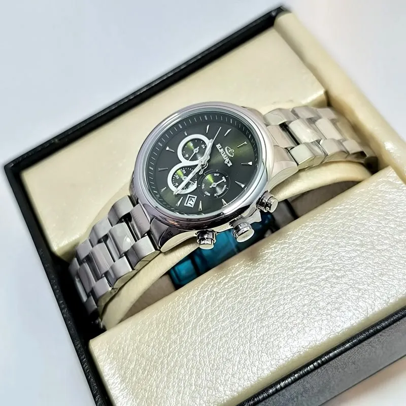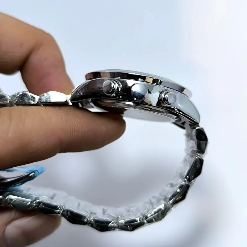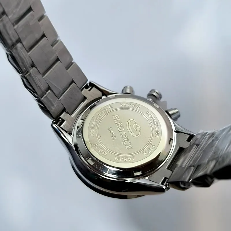 این ساعت زیبای جذاب و رنگ ثابت، طرح سه موتور ژاپن، شیشه ضد خش، بند با کیفیت و ظاهری بسیار زیبا مناسب مچ دست خانم های ظریف پسند است، این ساعت شیک و مجلسی می تواند جلوه خاصی به دستان شما بدهد و صفحه آن زیر نور رنگ جالبی به خود میگیرد که بسیار زیبا و چشم نواز است .