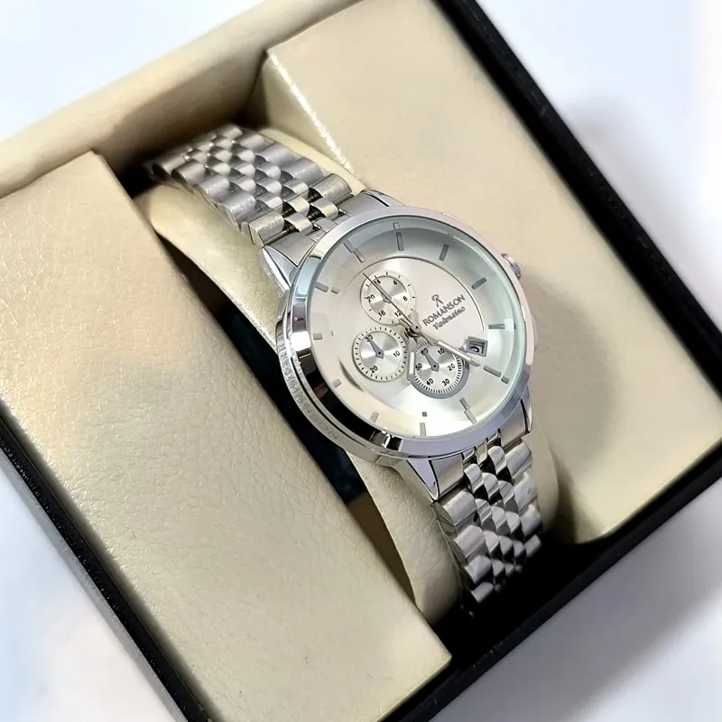 این مدل از رومانسون با موتور ژاپن، رنگ ثابت، بند استیل ضد حساسیت با دوام، شیشه معدنی ضد خش، طرح سه موتور و تاریخ دار با قیمتی استثنایی می تواند تکمیل کننده ی استایل شما از لحاظ ساعت دستتان باشد .
