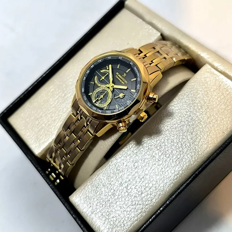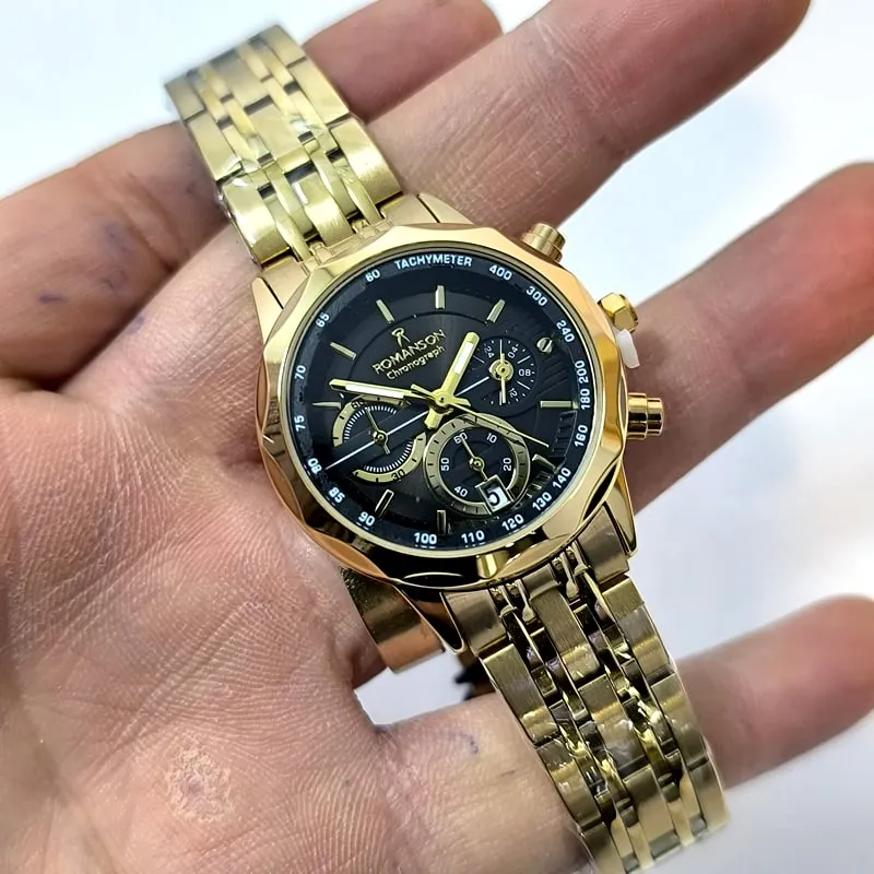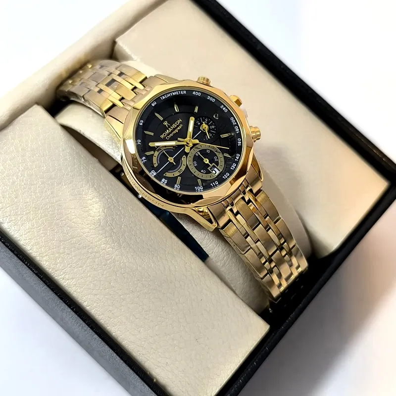 این مدل از رومانسون کرنوگراف (سه موتور فعال) با رنگ ثابت، بند استیل ضد حساسیت با دوام، شیشه معدنی ضد خش و تاریخ دار با قیمتی استثنایی می تواند تکمیل کننده ی استایل شما از لحاظ ساعت دستتان باشد .