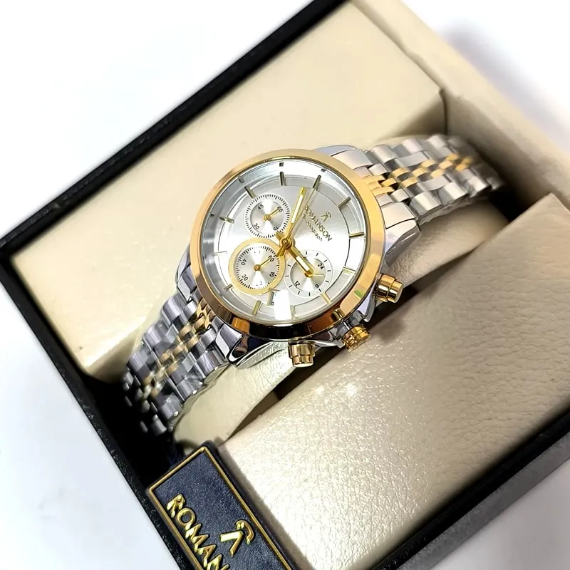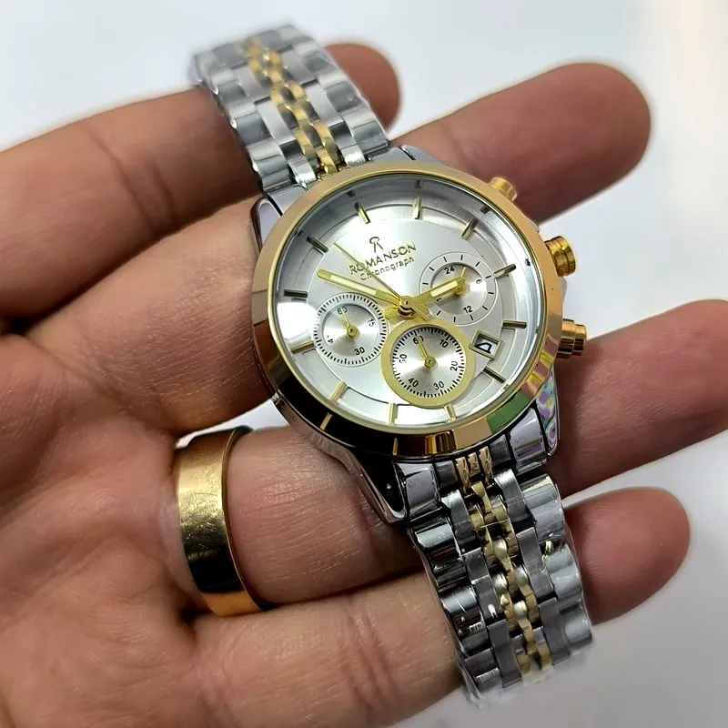 این مدل از رومانسون کرنوگراف (سه موتور فعال) با رنگ ثابت، بند استیل ضد حساسیت با دوام، شیشه معدنی ضد خش و تاریخ دار با قیمتی استثنایی می تواند تکمیل کننده ی استایل شما از لحاظ ساعت دستتان باشد .