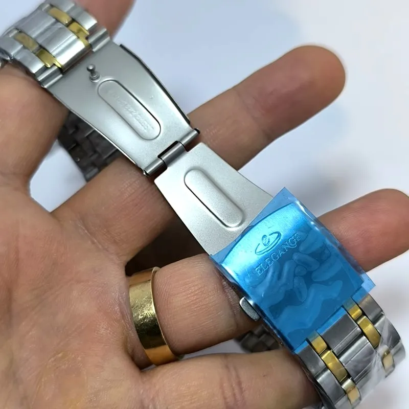 این ساعت زیبای جذاب و رنگ ثابت، تاریخ دار، شیشه ضد خش، بند با کیفیت با استیل رنگ ثابت و ظاهری بسیار زیبا مناسب مچ دست آقایان خاص پسند است، این ساعت شیک و مجلسی می تواند جلوه خاصی به دستان شما بدهد و صفحه آن زیر نور رنگ جالبی به خود میگیرد که بسیار زیبا و چشم نواز است .