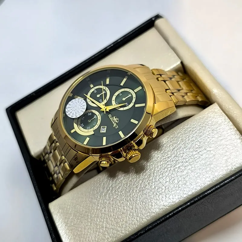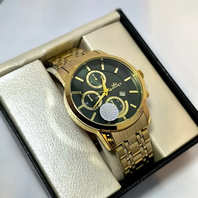 ساعت مردانه الگانس تاریخ دار - رنگ ثابت - طرح سه موتور - 1299
