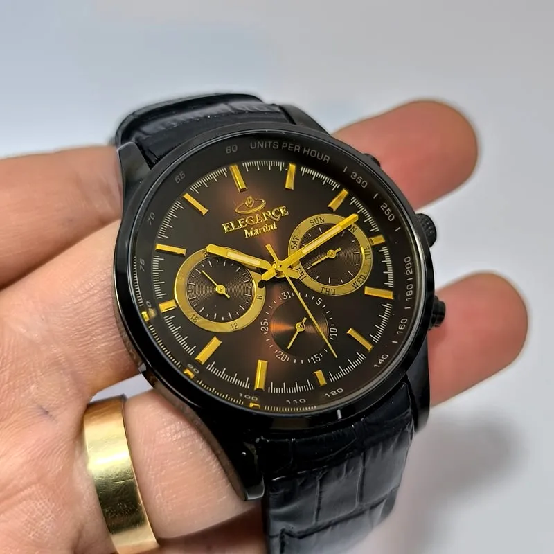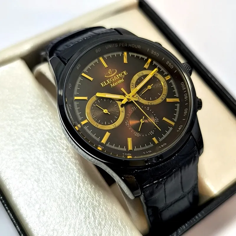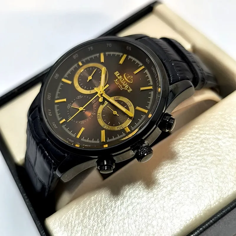 ساعت مردانه الگانس سه موتور فعال ژاپن بند چرم – فول تایم – ۱۱۲۸
