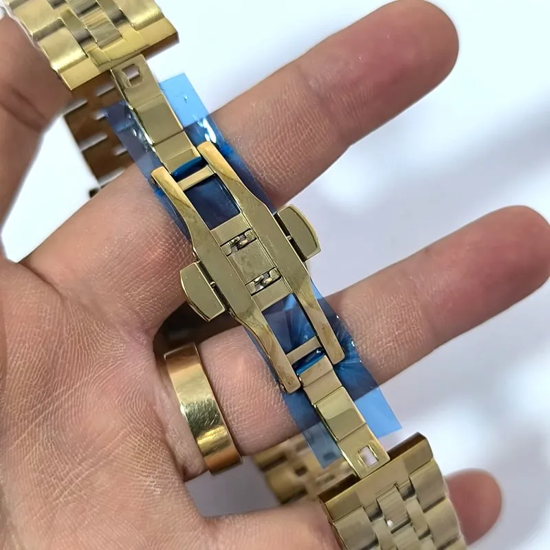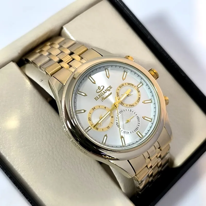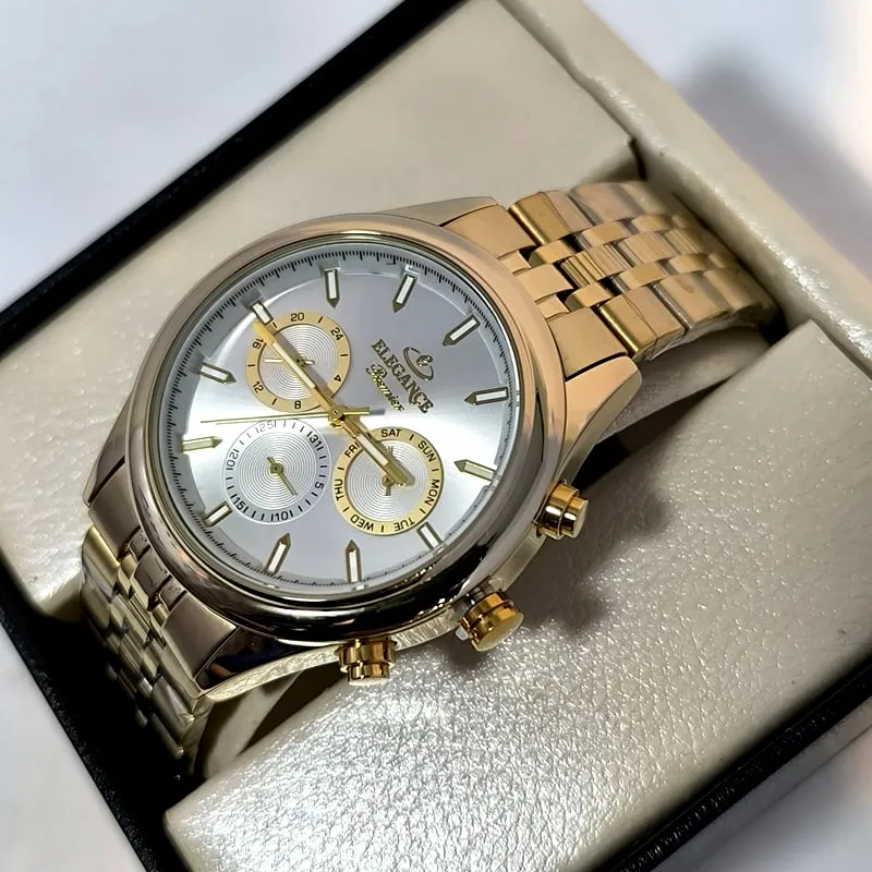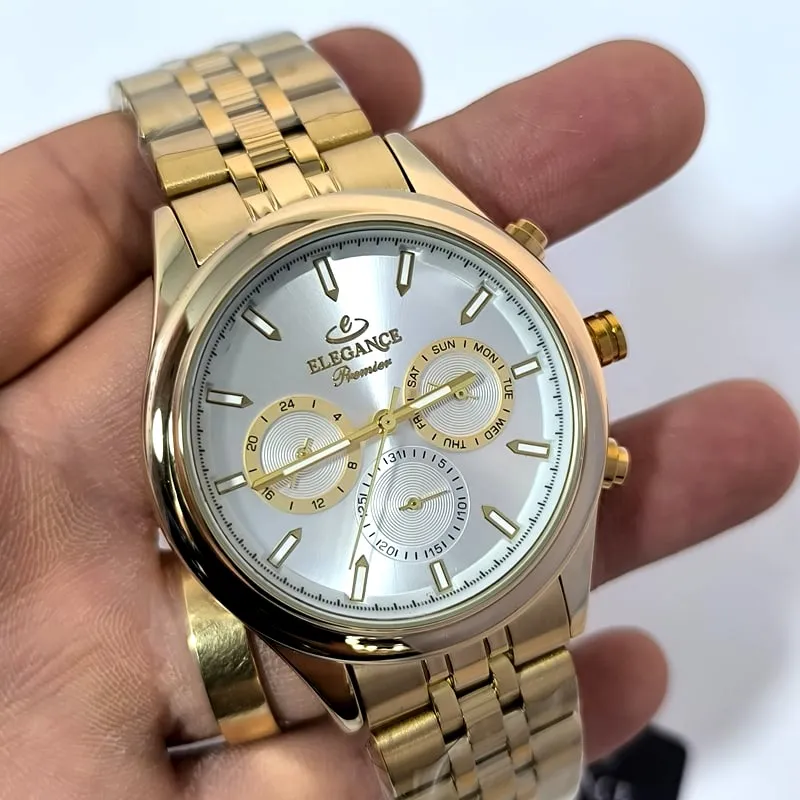 این ساعت زیبای جذاب و رنگ ثابت، سه موتوره ژاپن، شیشه ضد خش، بند با کیفیت و ظاهری بسیار زیبا مناسب مچ دست آقایان خاص پسند است، این ساعت شیک و مجلسی می تواند جلوه خاصی به دستان شما بدهد و صفحه آن زیر نور رنگ جالبی به خود میگیرد که بسیار زیبا و چشم نواز است .