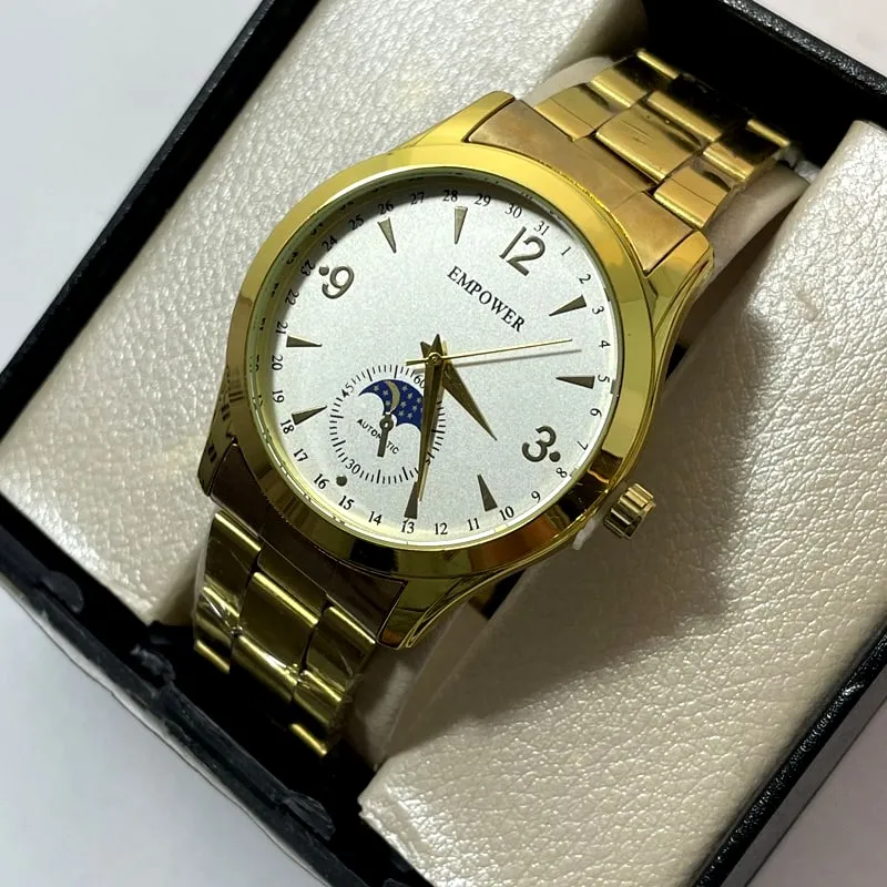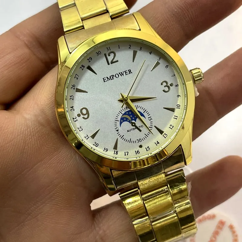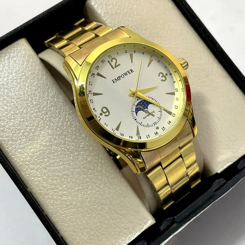 ساعت مردانه امپاور دو رنگ صفحه طلایی جزو ساعت های بسیار زیبا، خوش ساخت و جذاب است که زیبایی خیره کننده ای را به مچ دست شما اضافه می کند