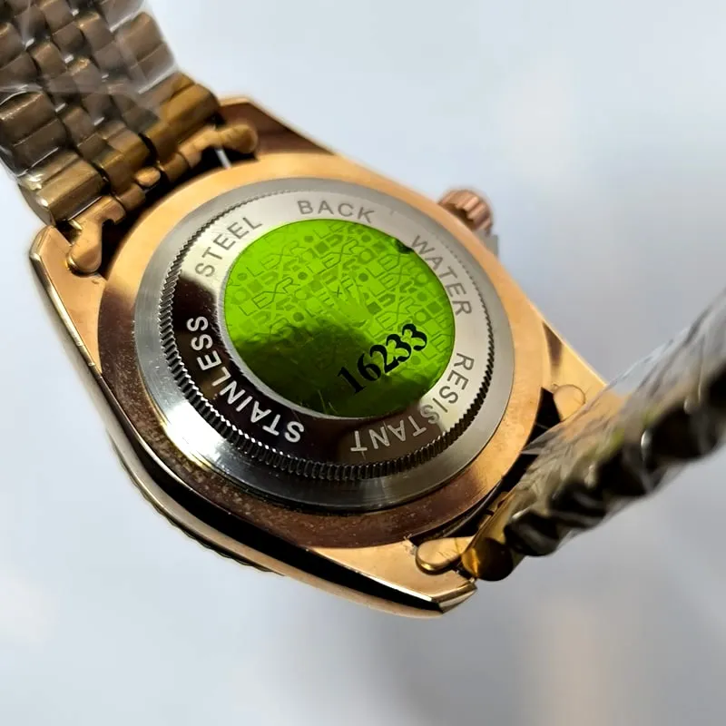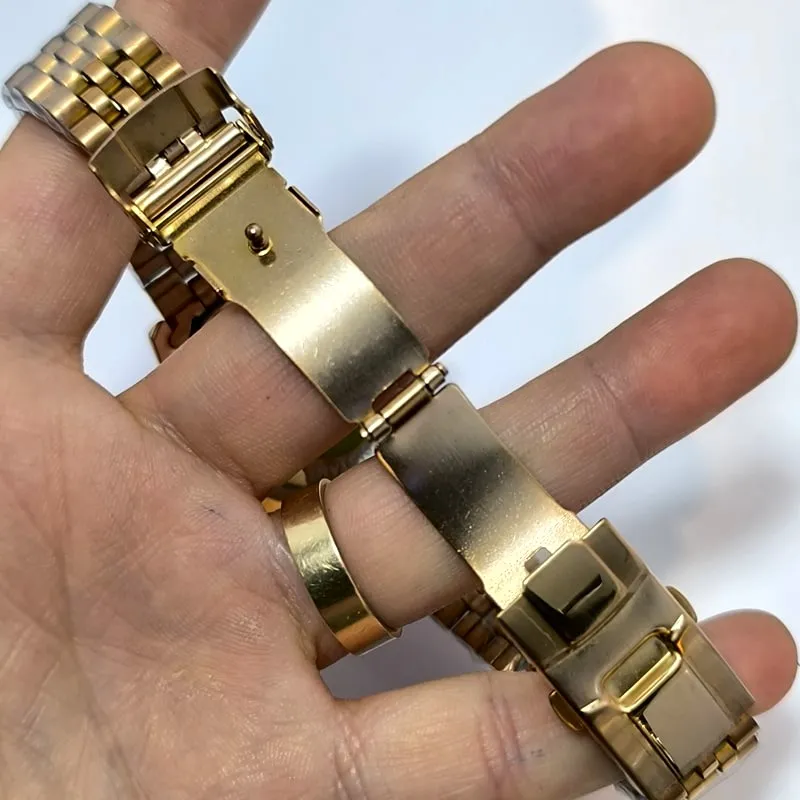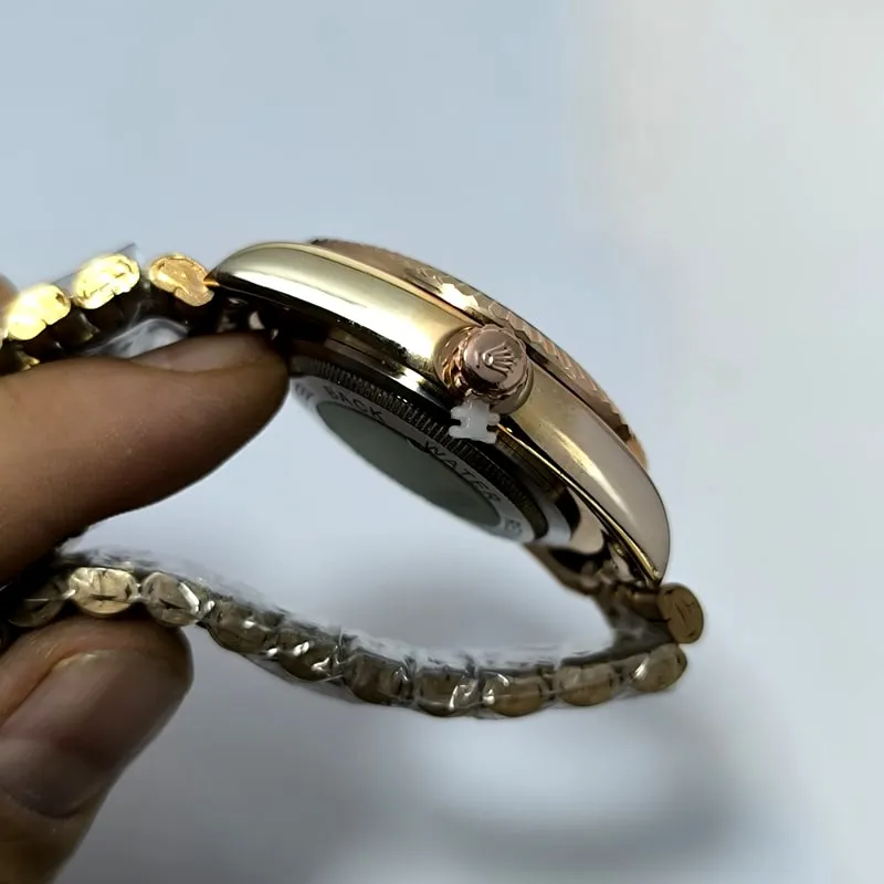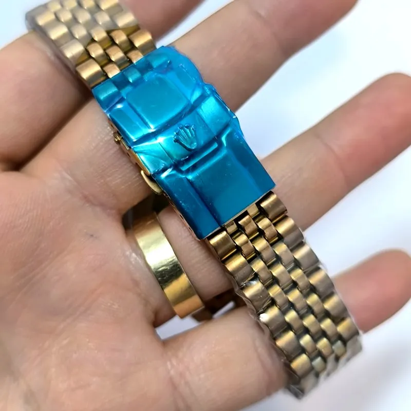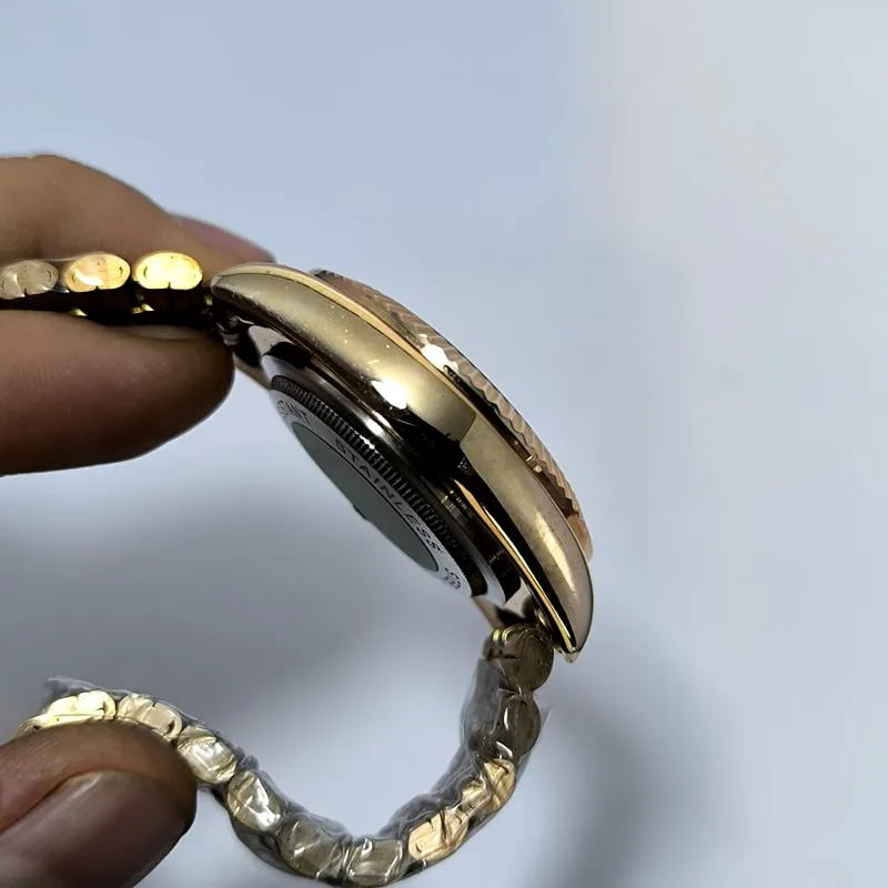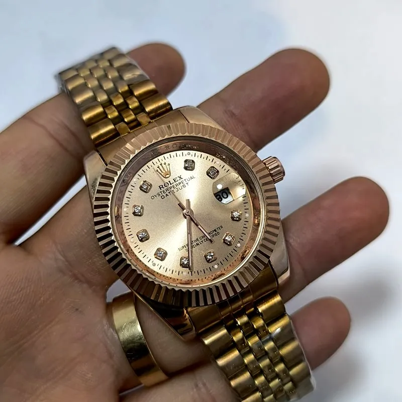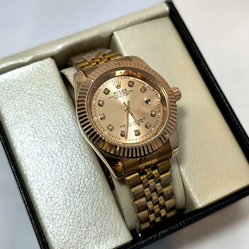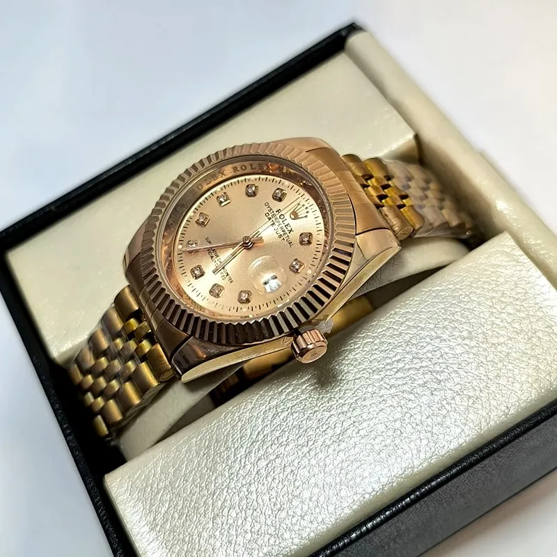 قفل این ساعت طرح رولکس است که می تواند بیش از پیش این مدل را به مدل اصلی آن نزدیک کند، همچنین هک برند روی درب پشت نیز از نشانه های دیگر کیفیت مطلوب این نسخه ی کپی از رولکس است .