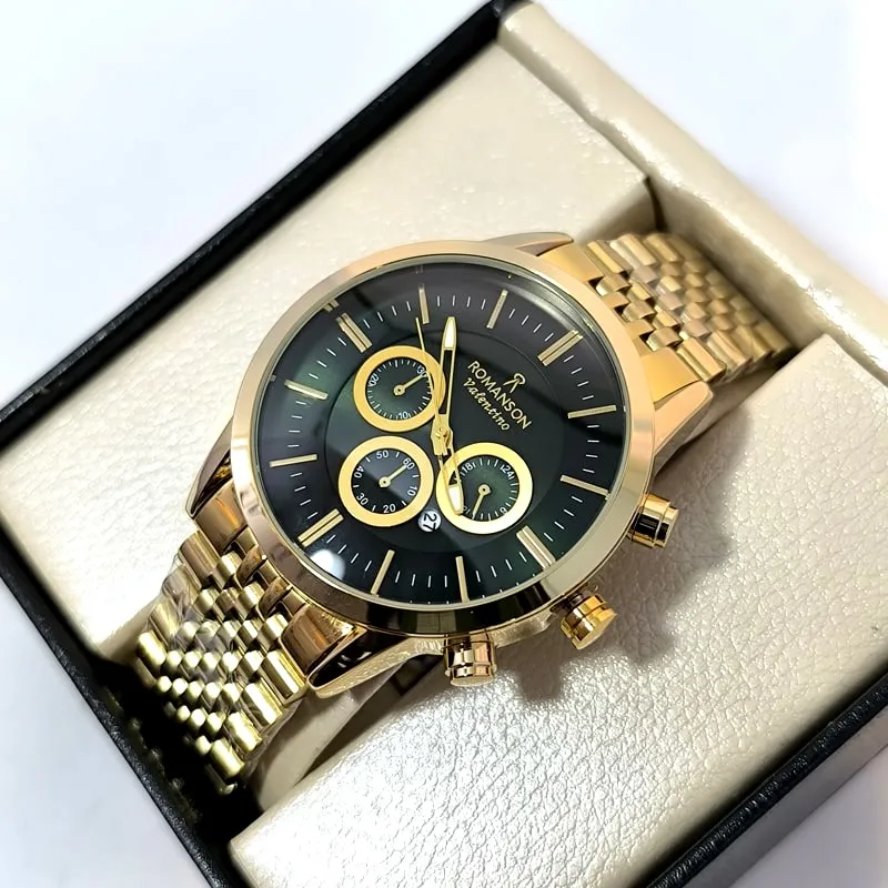 این مدل از رومانسون با موتور ژاپن، رنگ ثابت، بند استیل ضد حساسیت با دوام، شیشه معدنی ضد خش، طرح سه موتور و تاریخ دار با قیمتی استثنایی می تواند تکمیل کننده ی استایل شما از لحاظ ساعت دستتان باشد .