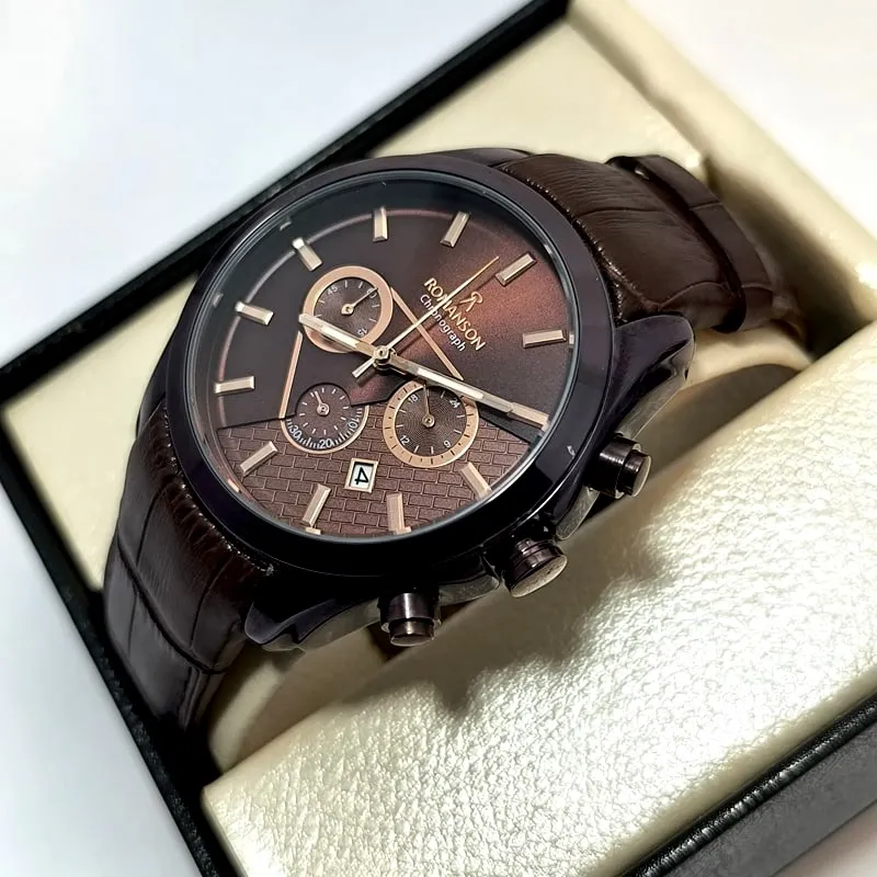 ساعت مردانه رومانسون کرنوگراف بند چرم - تاریخ دار - سه موتور فعال - 1166