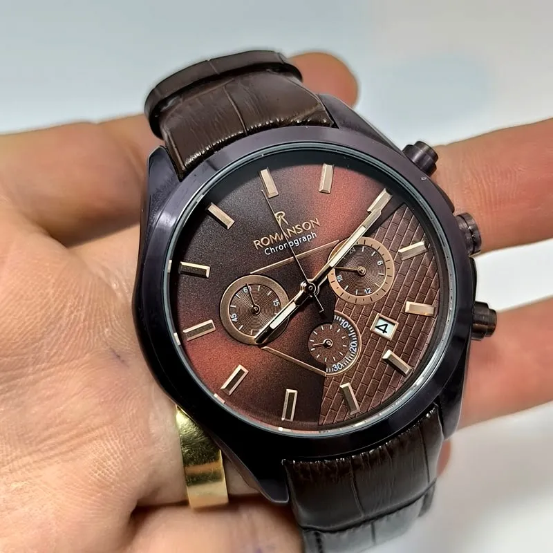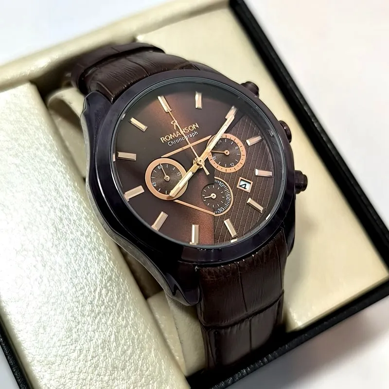 ساعت مردانه رومانسون کرنوگراف بند چرم – تاریخ دار – سه موتور فعال – ۱۱۶۶