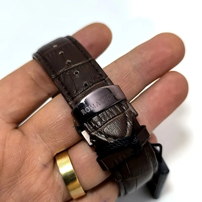 این مدل از رومانسون کرنوگراف (سه موتور فعال) با رنگ ثابت، قاب استیل رنگ ثابت، بند چرم با کیفیت و با دوام، شیشه معدنی ضد خش و تاریخ دار با قیمتی استثنایی می تواند تکمیل کننده ی استایل شما از لحاظ ساعت دستتان باشد .