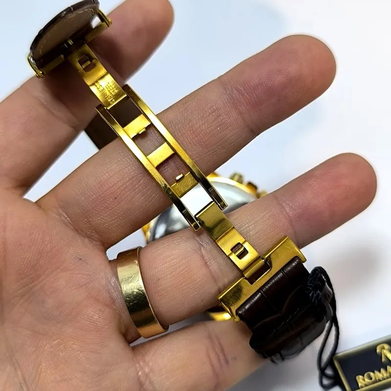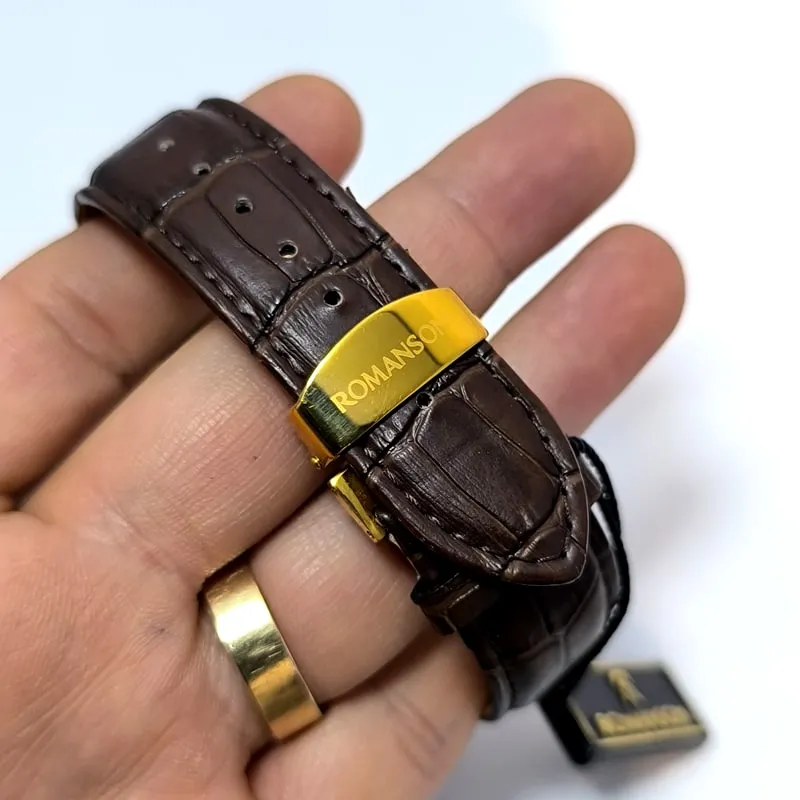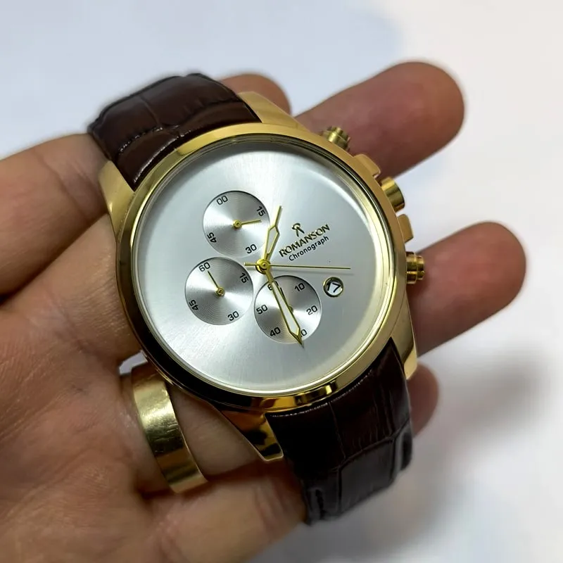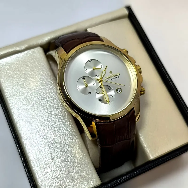 این مدل از رومانسون کرنوگراف (سه موتور فعال) با رنگ ثابت، قاب استیل رنگ ثابت، بند چرم با کیفیت و با دوام، شیشه معدنی ضد خش و تاریخ دار با قیمتی استثنایی می تواند تکمیل کننده ی استایل شما از لحاظ ساعت دستتان باشد .