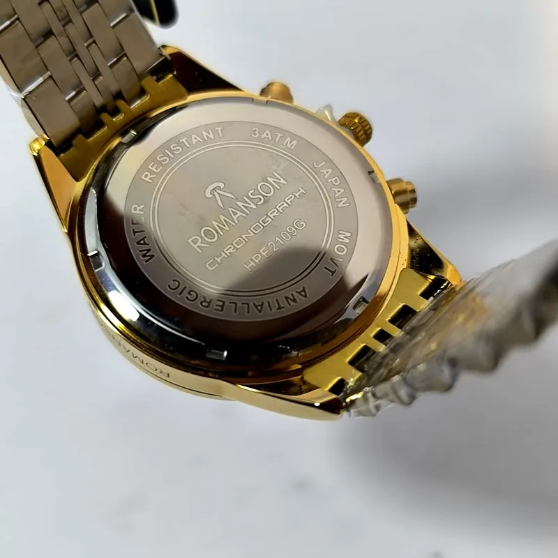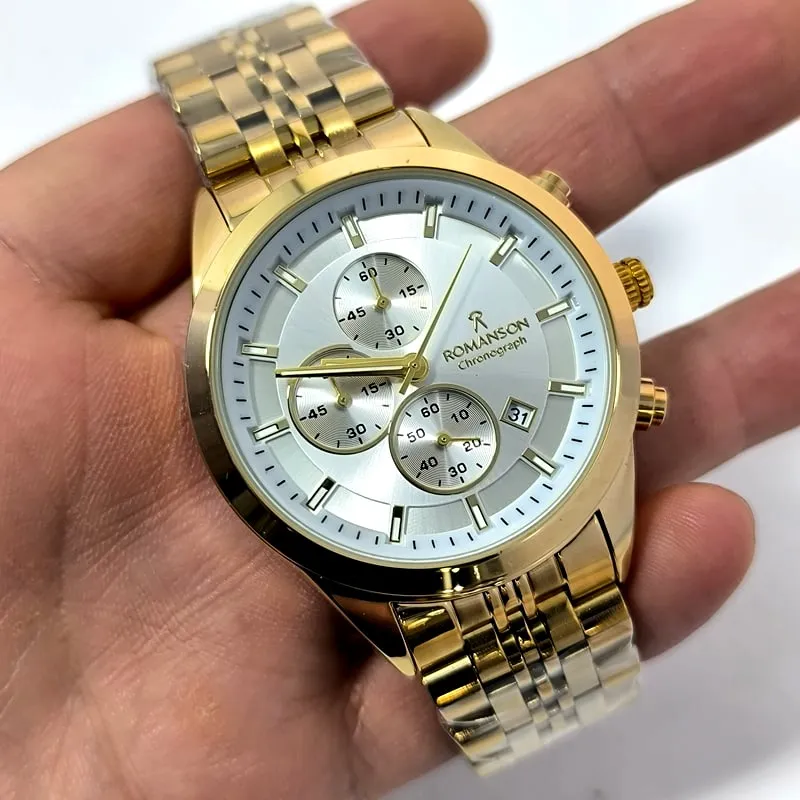 این مدل از رومانسون کرنوگراف (سه موتور فعال) با رنگ ثابت، بند استیل ضد حساسیت با دوام، شیشه معدنی ضد خش و تاریخ دار با قیمتی استثنایی می تواند تکمیل کننده ی استایل شما از لحاظ ساعت دستتان باشد .